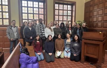 On Wednesday, November 19, 2025 DePaul students, faculty, and Graceland Cemetery staff gathered in the chapel of the historic cemetery on Chicago’s north side for the final presentation of Professor Julie Bokser’s course, WRD 377: Writing and Social Engagement: Women of Graceland. The event showcased the final product of the class’s work during the quarter: a completed audio tour that highlights the overlooked histories of women writers and rhetors buried at Graceland Cemetery. This course was a part of DePaul’s Hidden Narratives Initiative, a program that directly partners with DePaul classes and Graceland to produce accessible resources for visitors to