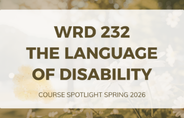 Do you have a disability or know someone who does? No matter who you are, the answer is almost certainly yes. What’s less clear-cut is what disability is, exactly, and what we should do when we encounter it, whether it’s our own disability or that of someone we know. This spring, Dr. Monica Reyes is teaching WRD 232: The Language of Disability, a course that explores the intersection of disability, culture, and society. It examines how the language we use defines, describes, and creates real-world effects for those with disabilities. Has this course been offered before, and is this your